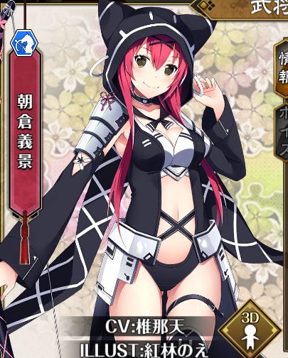 | 4 | 朝倉義景 | 騎兵 | 535 | 71 | 20 | 95 | 一点集中 目標に攻撃力120%のダメージを与える。 さらに目標の攻撃力30%低下。2ターン継続 | - | ||
